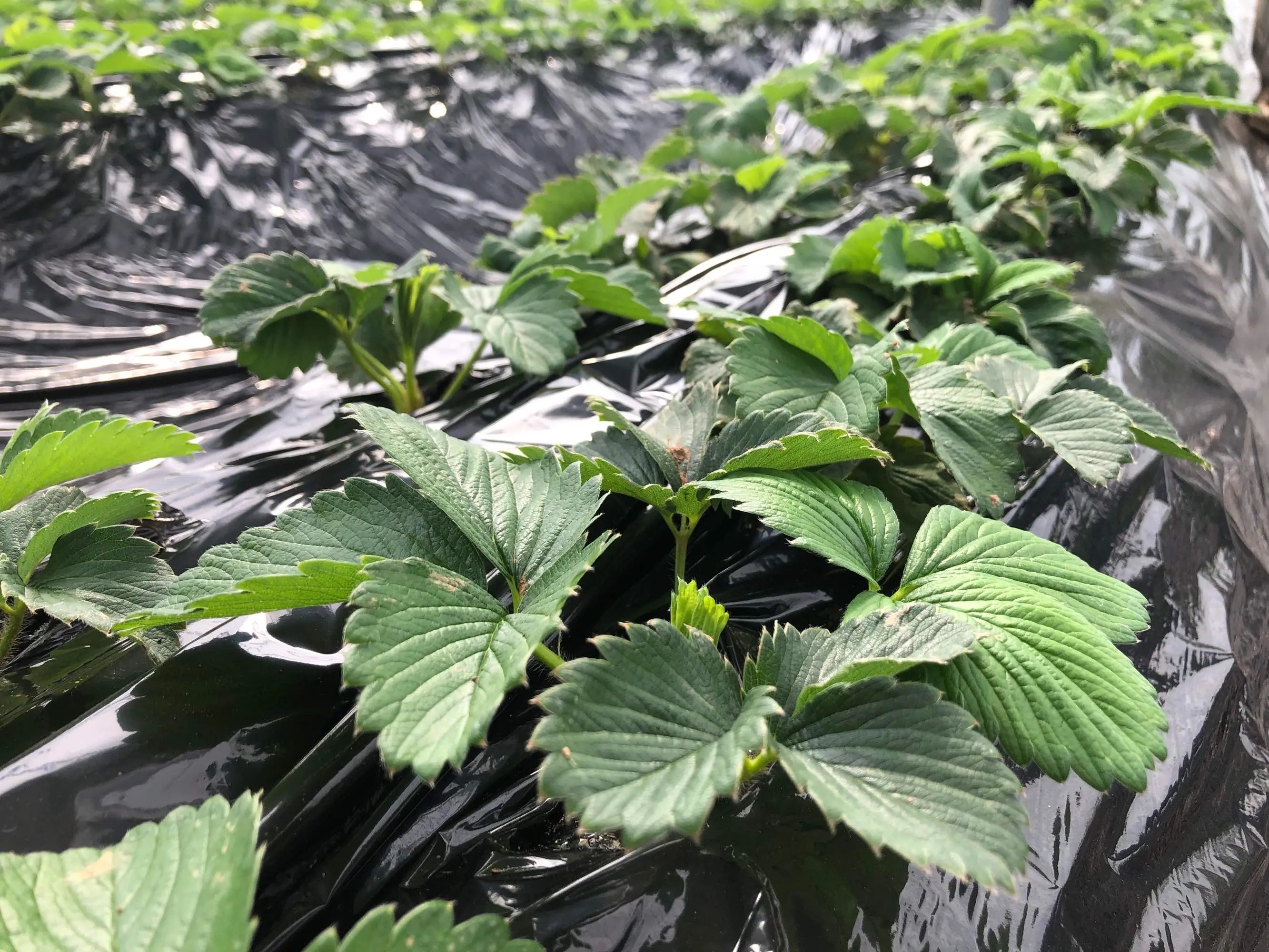黑色/银黑全生物降解地膜遮光性好,能有效抑制垄面杂草,减少草害竞争与病害滋生,降低除草用工与农药使用,草莓更洁净安全。